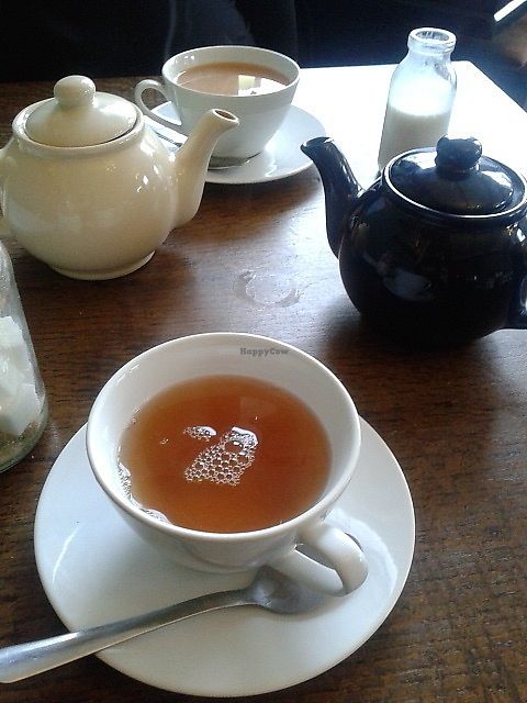 I recently visited here for lunch after hearing about a change on their menu to cater more for vegans. The vegan options were creative and a nice change from your bog standard dishes often put on veg friendly outlets. I decided to order the tofu pho bowl with an oolong tea, whilst my wife decided upon the baked spiced hummus with crumbled falafels and flatbreads and rooibos tea. The tofu pho bowl was beautifully presented in a clear bowl and the broth and tofu were perfectly spiced, seasoned and cooked. The hummus was exceptional and was packed full of flavour and well spiced, with the addition of caramelised onions and mushroom toppings complimenting the dish perfectly. In total we spent about £20. We were too full for any dessert but I did notice a variety of cakes available on the counter but unfortunately they were not labelled. I should also mention there is a great selection of teas available too. Inside the decor and interior adds character and together with the friendly staff help make this a very inviting place to visit and socialise.