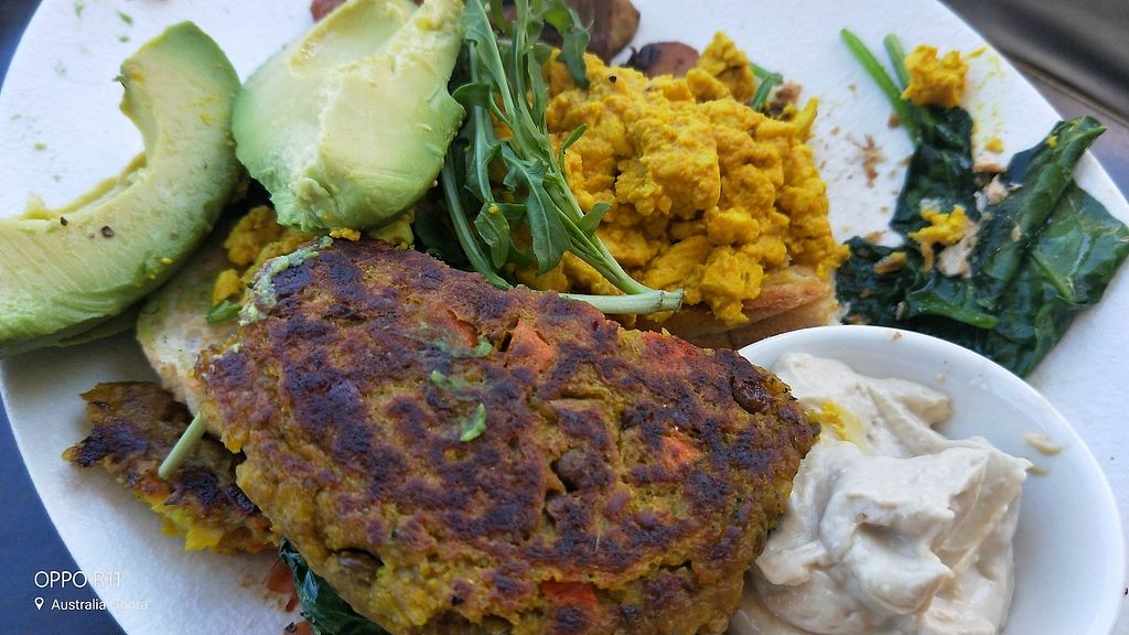 Serves meat, vegan options available. Café offering breakfast choices such as tofu scramble and vegan breaky. Lunch options include a falafel bowl and falafel wrap. Has plant milks for coffee. Open Mon-Fri 7:00am-4:00pm, Sat 7:00am-3:00pm, Sun 8:00am-3:00pm.