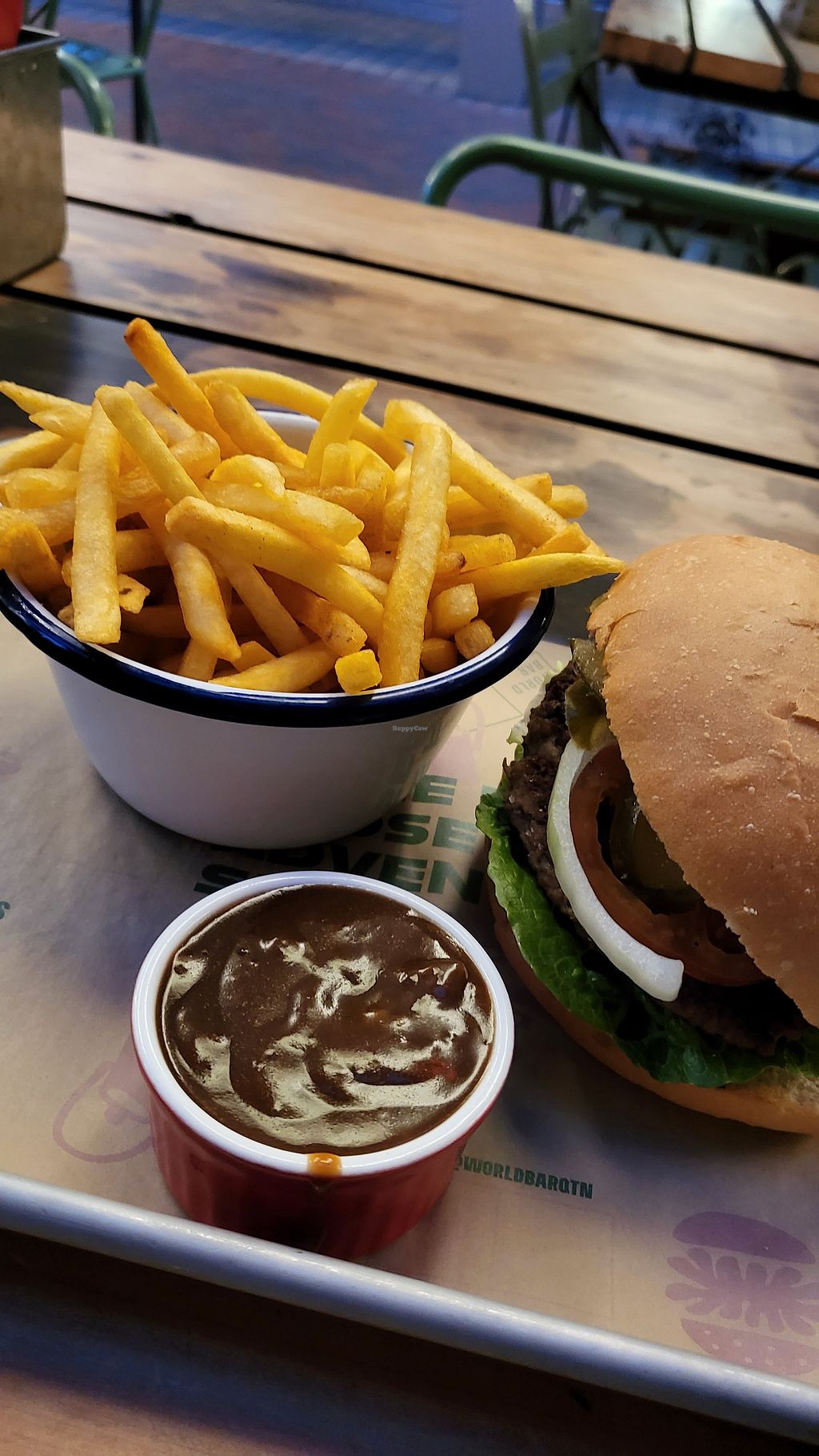 We got the burger and loaded fries. It was yum and exactly what you’d expect from the menu (your typical vegan burger at a restaurant that serves meat - so a solid 3/5). The loaded fries, I’d get again.