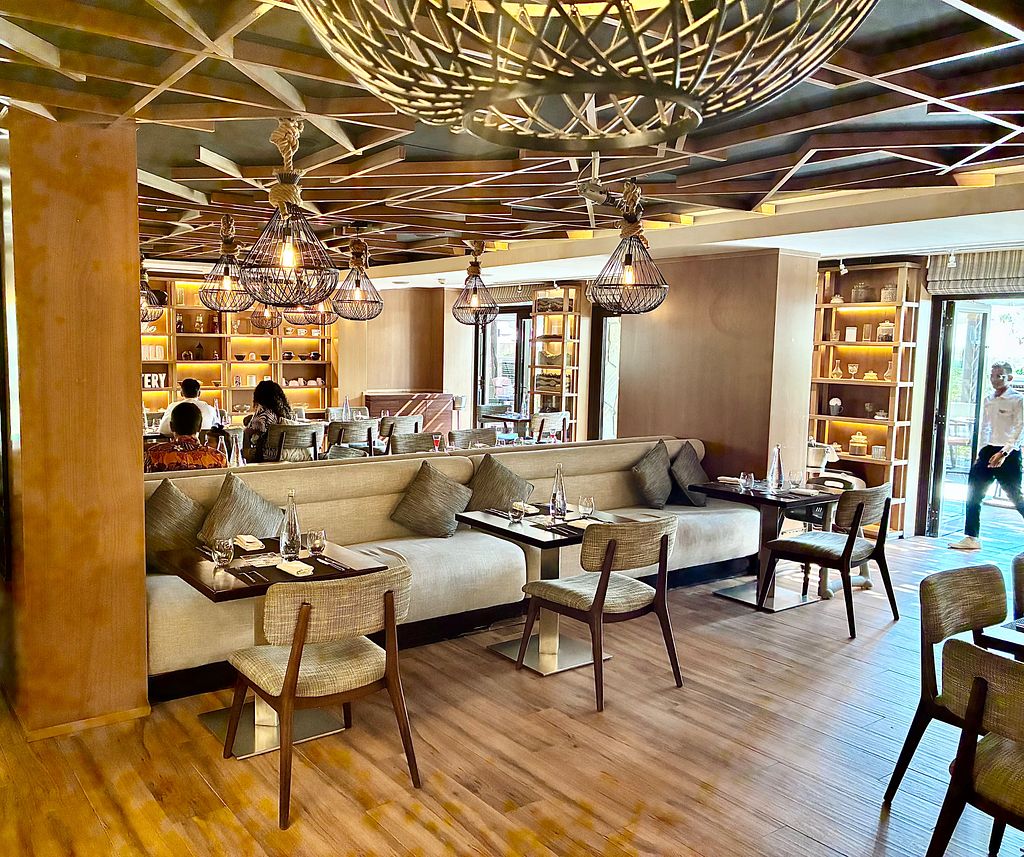 Serves meat, vegan options available. A brunch and a la carte restaurant within the Sofitel Dubai The Palm hotel serving international cuisine. Vegan buffet items are clearly identified, and a la carte items are labelled. Vegan options include garden salad, penne pomodoro, spaghetti aglio e olio, sorbets, onion rings, spinach fatayer, Cajun spiced fries, sushi, chocolate and raspberry shooter, a salad bar, and a selection of breads and condiments. Open Mon-Sat 12:30pm-3:00am, Sun 7:00am-11:00am.