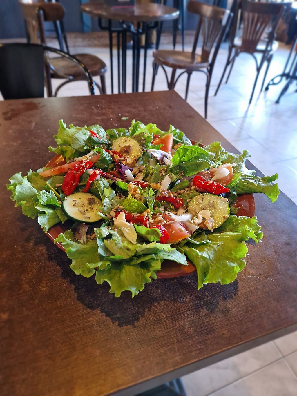 They have a vegan menu, but they didn't have anything available besides the guacamole and the burger, so we ended up ordering these 2. The guacamole with nachos was quite good, the burger wasn't my favourite, the seitan inside was a bit rubbery and the coleslaw that came with it, felt like it was a bit old and suspicious, so I skipped it. The place was a bit less cleaner than what I expected.