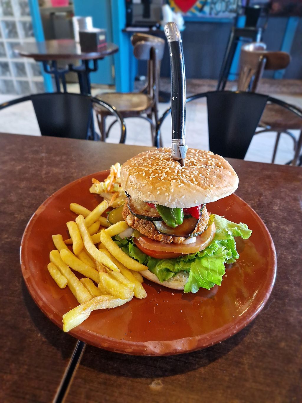Had the vegan burger (with artesan chorizo meat) a lot of veggies, fried potatoes and coleslaw. Was a great dinner. Would recommend 👍