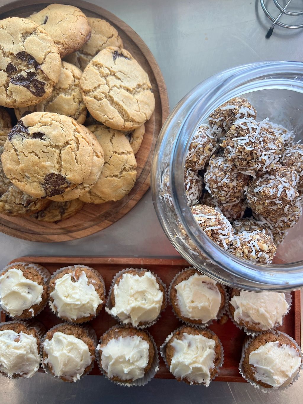 Matcha Latte, Chocolate Chip Cookie, and Ginger Cookie