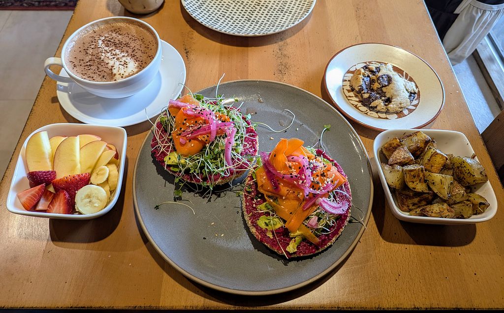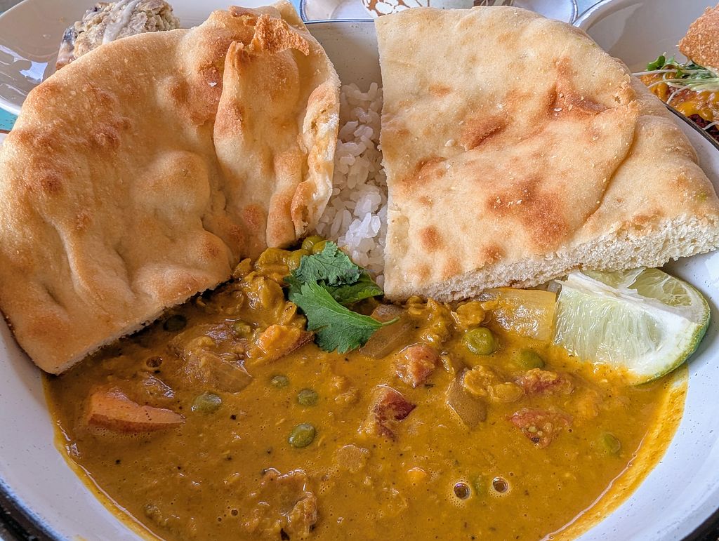 Blueberry Scones, Coconut Curry, Chai Latte, Garden Salad