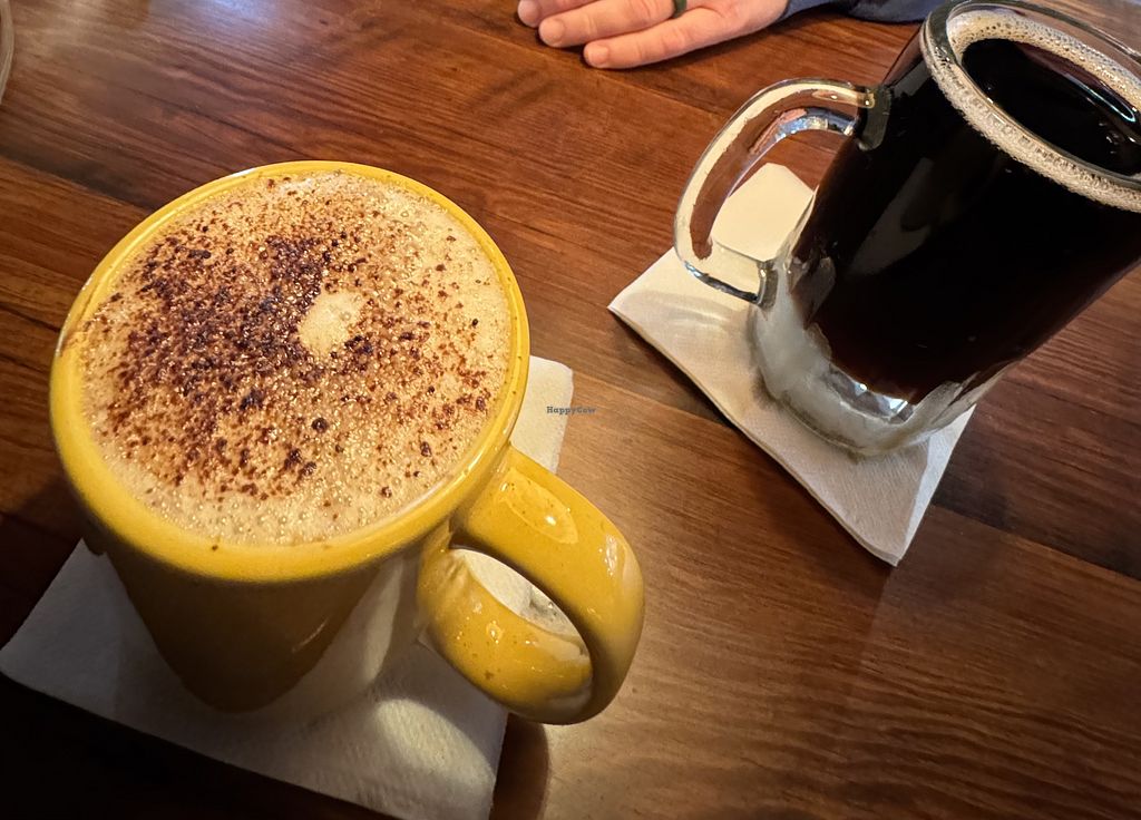 The veggie burger is still vegan! Yet I didn’t order that. I had the yellow submarine, had to swap the non vegan pesto for hummus. And man it was so good. The old st. Joe latte (I think it was called) was the best coffee I’ve ever had!