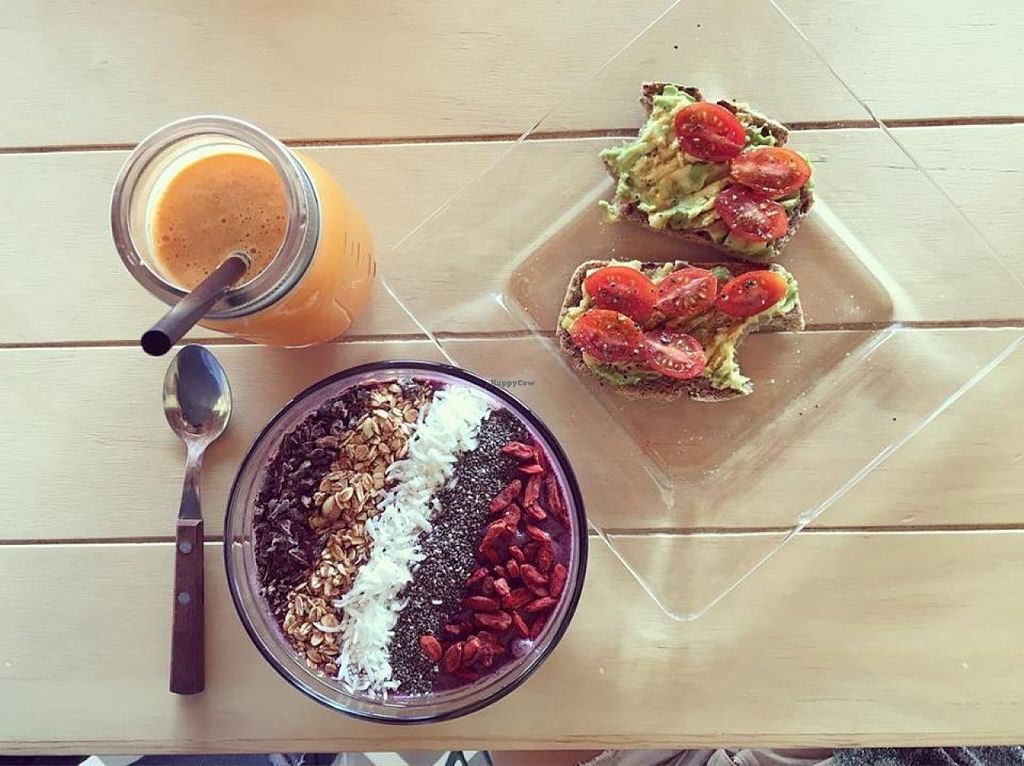 Buddha bowl, avocado toast and pina colada smoothie