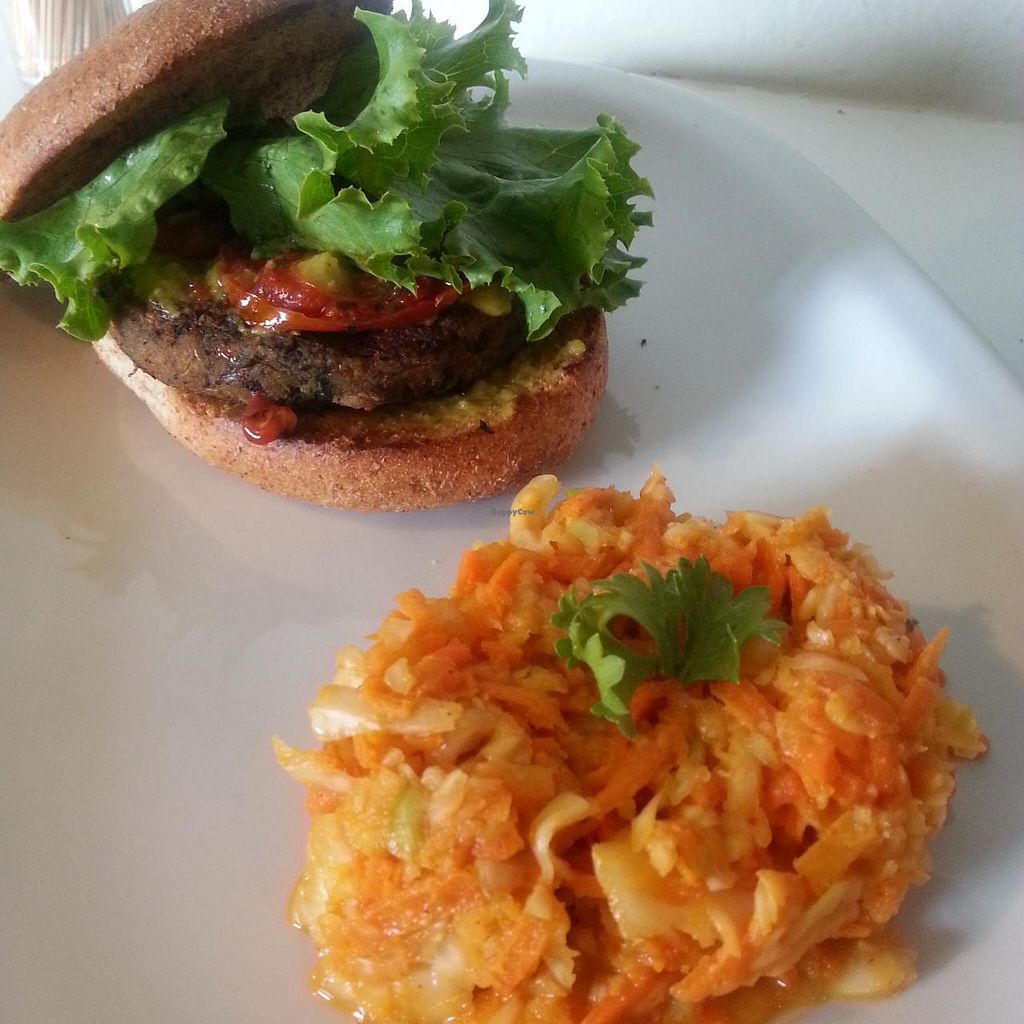 Veggie Burger with Guacamole and coleslaw