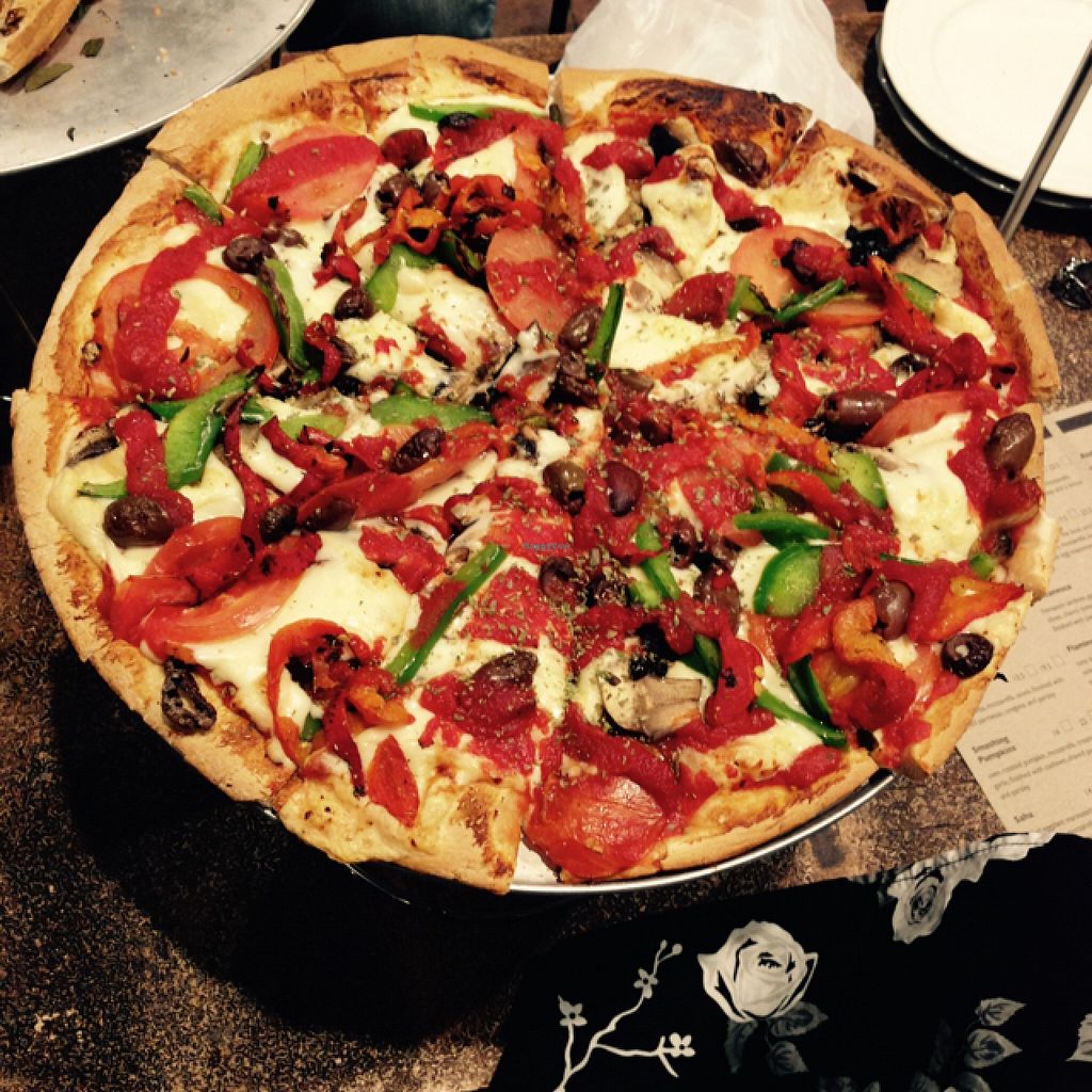 Farmers market pizza with vegan soy cheese