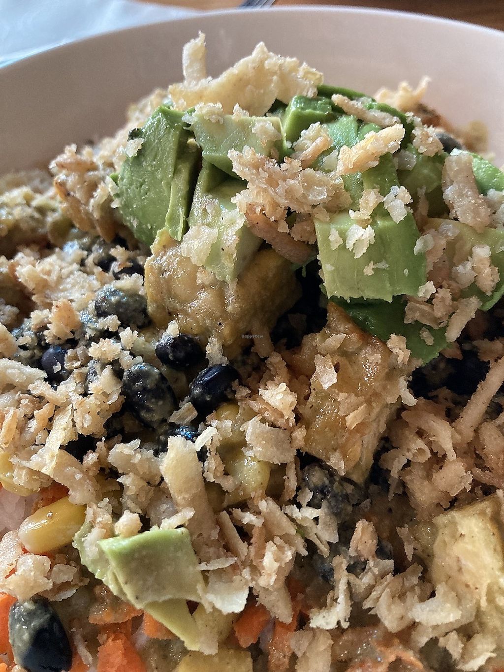 Veggie rice bowl with tofu and added black beans. The citrus sauce was…