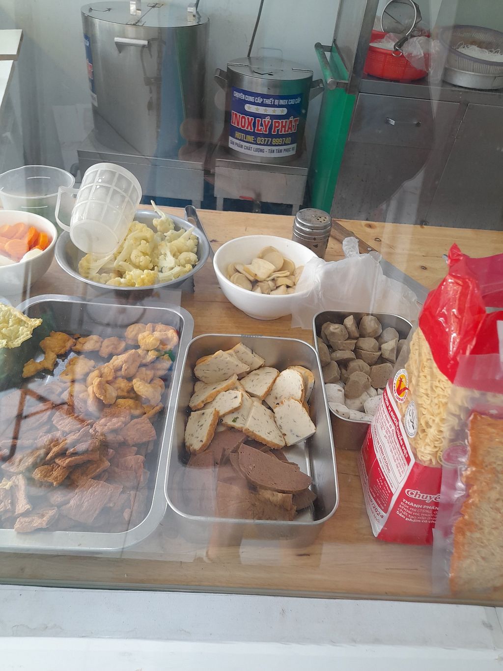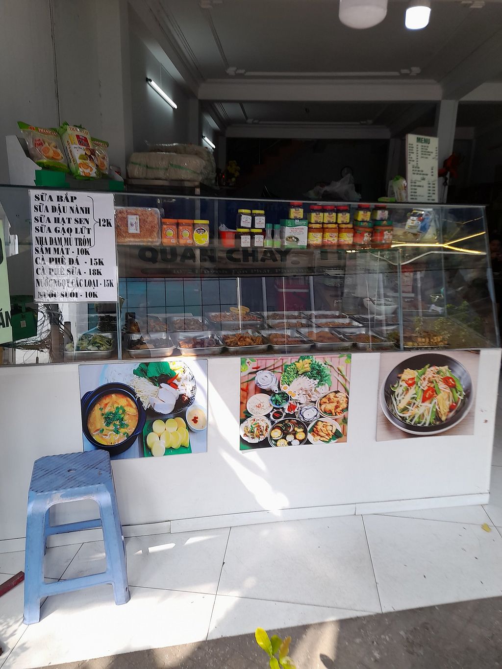 Excellent almost vegan Vietnamese restaurant. They use dairy in some drinks. All food is vegan. Plenty of seating inside. A limited menu. They do have a com chay inside, so if you can't speak or read Vietnamese just point to the various mock meats and over boiled veggies and a dollop of rice will come with it. My take away com chay was 30.000.