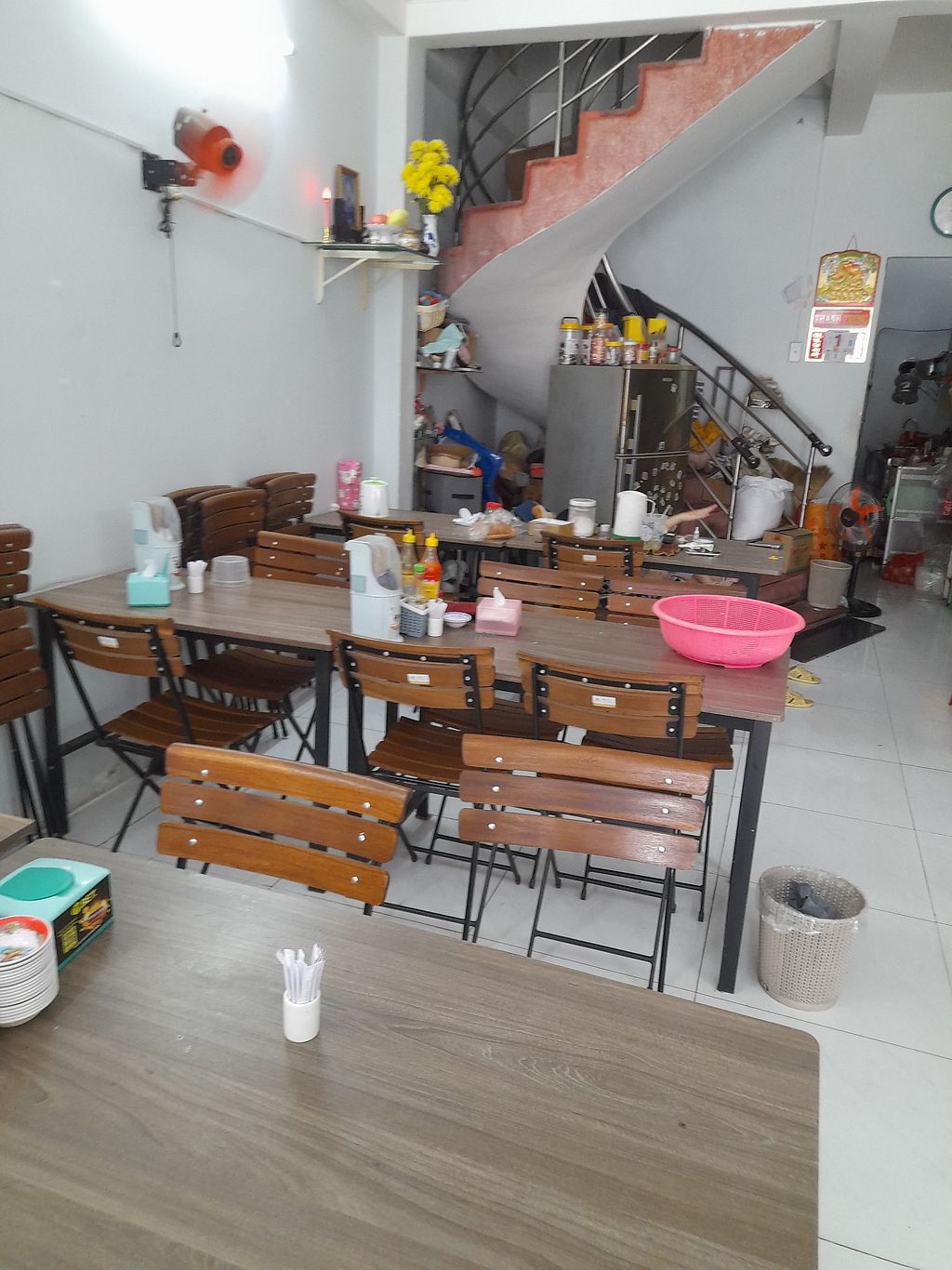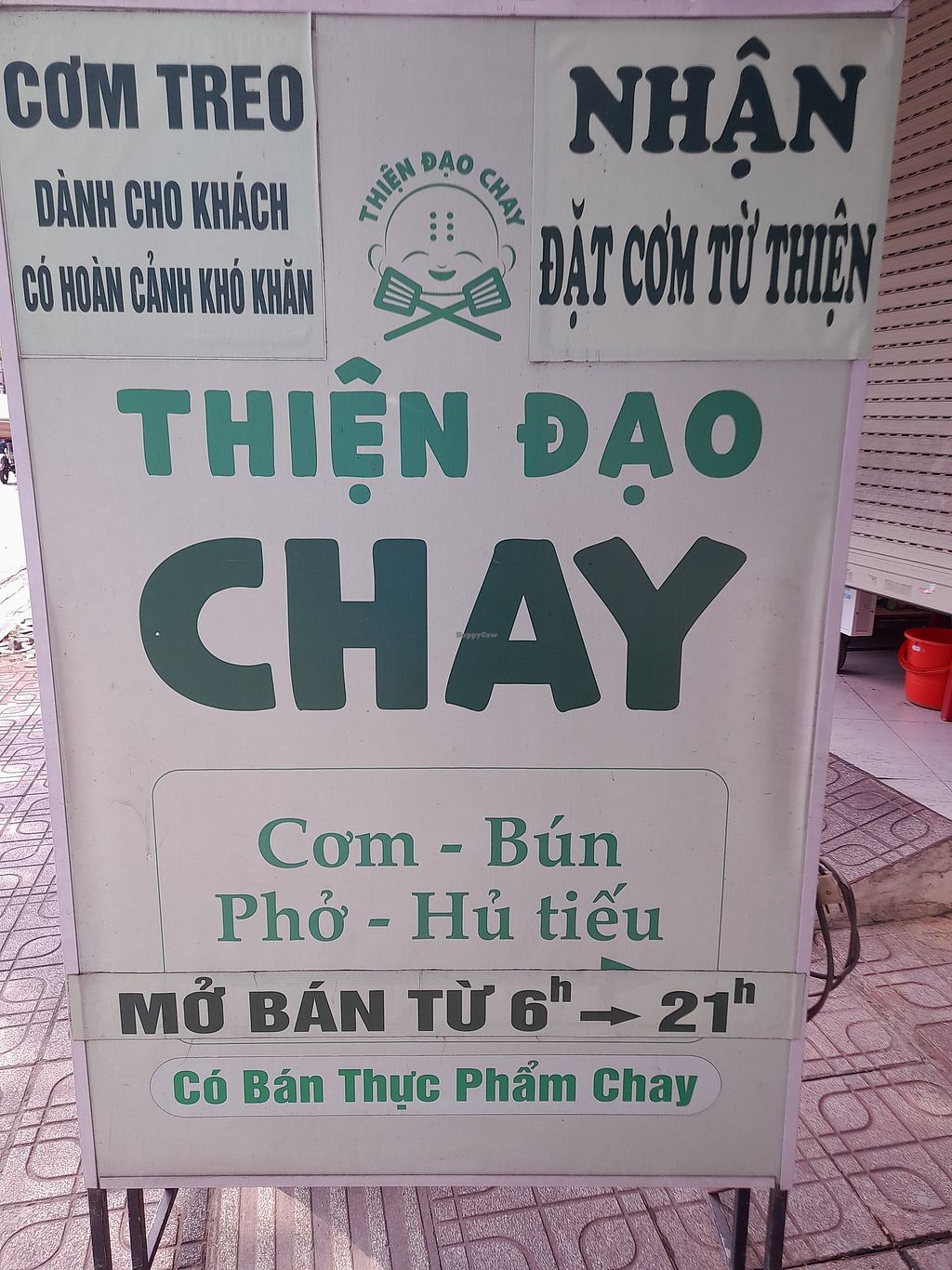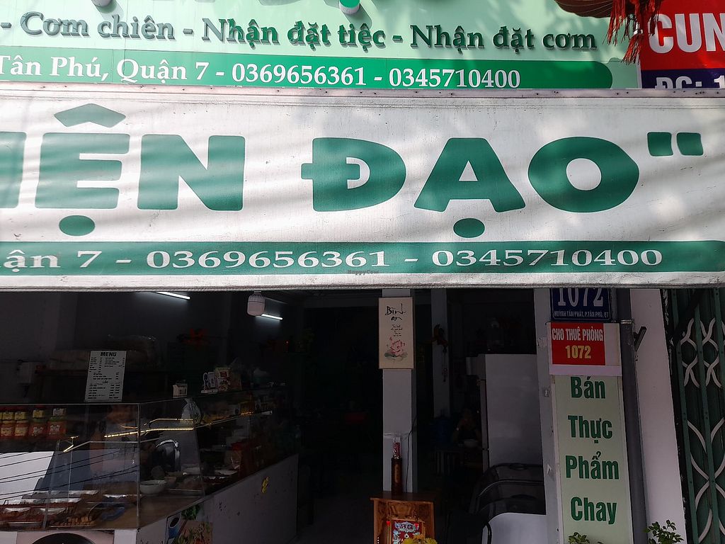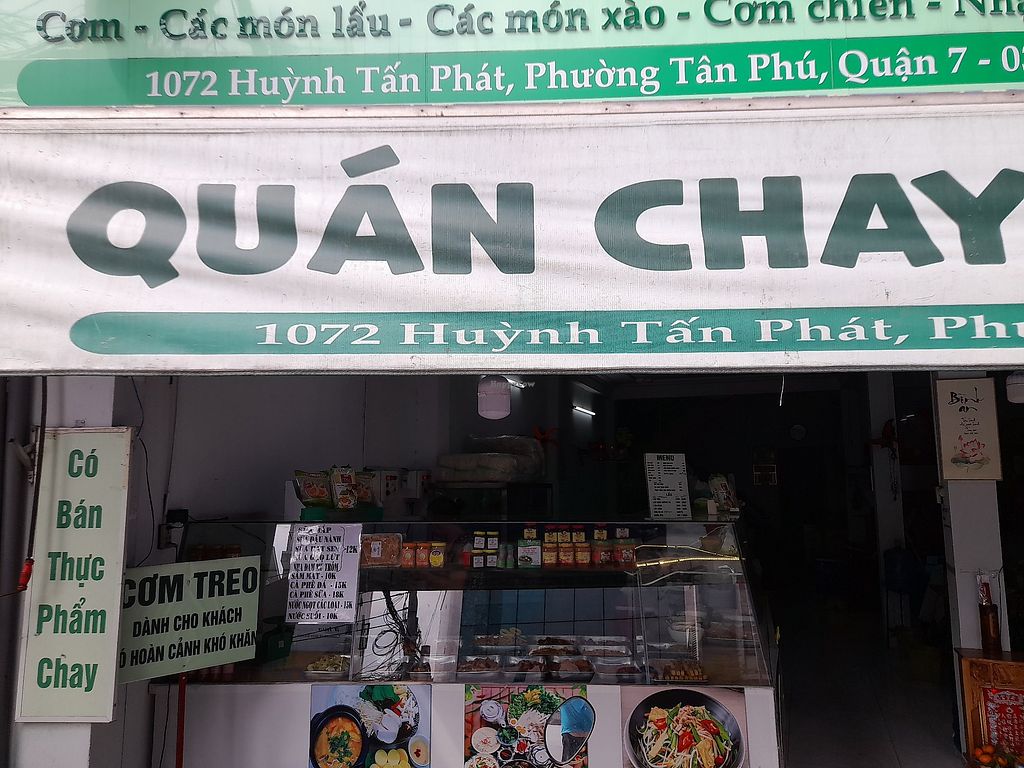 A mostly vegan Vietnamese restaurant (uses dairy in coffee, but all food is vegan). Has a limited menu and a large selection of com chay pre-cooked food. No English spoken and no menu in English. Plenty of seating inside. Payment by cash or bank transfer only. Open Mon-Sun 6:00am-9:00pm.