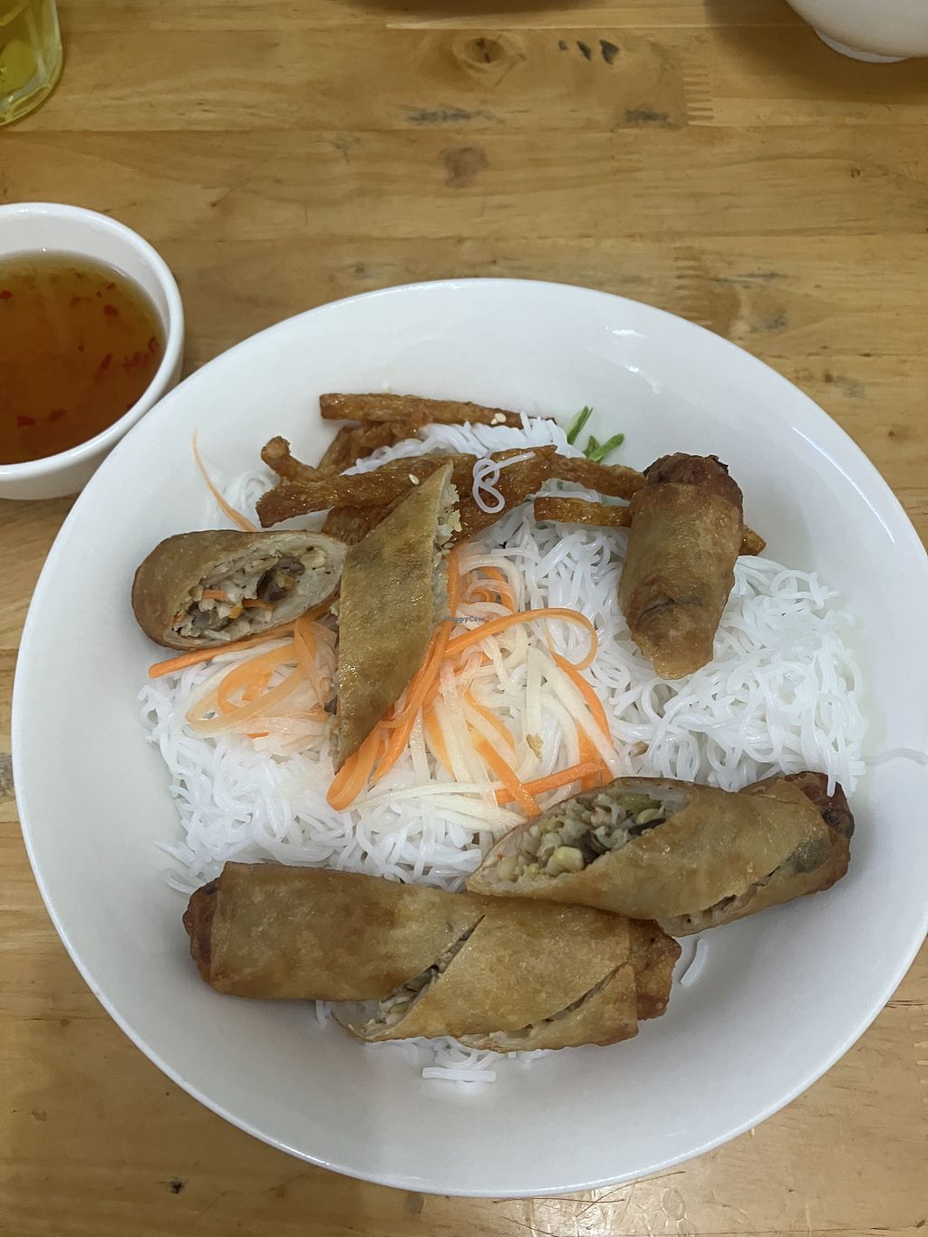 No English spoken but you can just point. Friendly service and a lot of choice. Another local place serving traditional Vietnamese food.