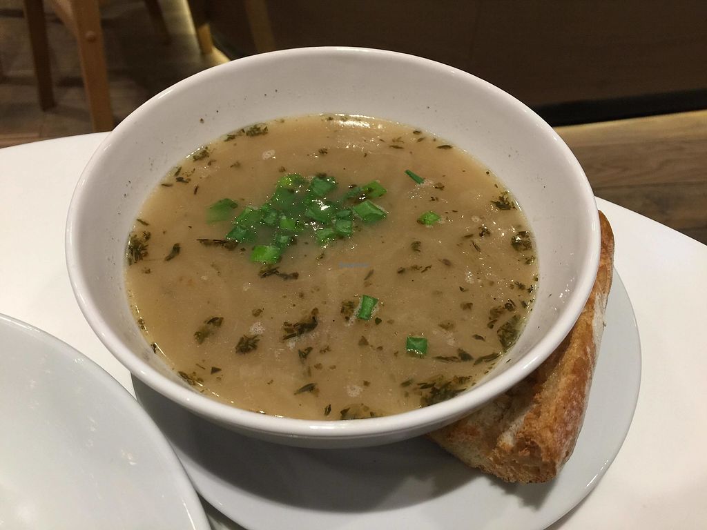 Photo by @tempehtions on Instagram. Thai soup and ravioli with spinach…
