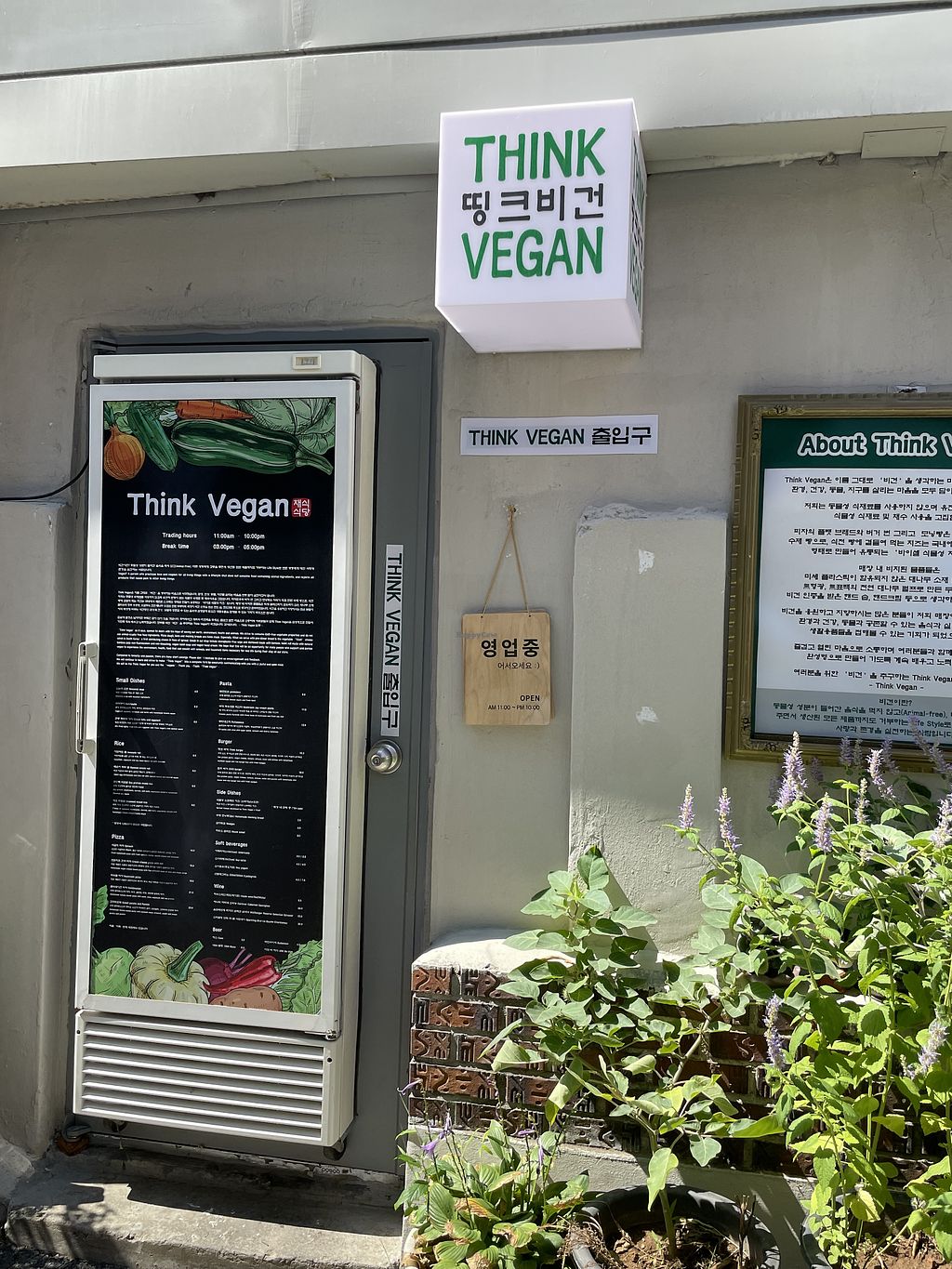 Signage on the main street side. It is hanging at the fried chicken st…