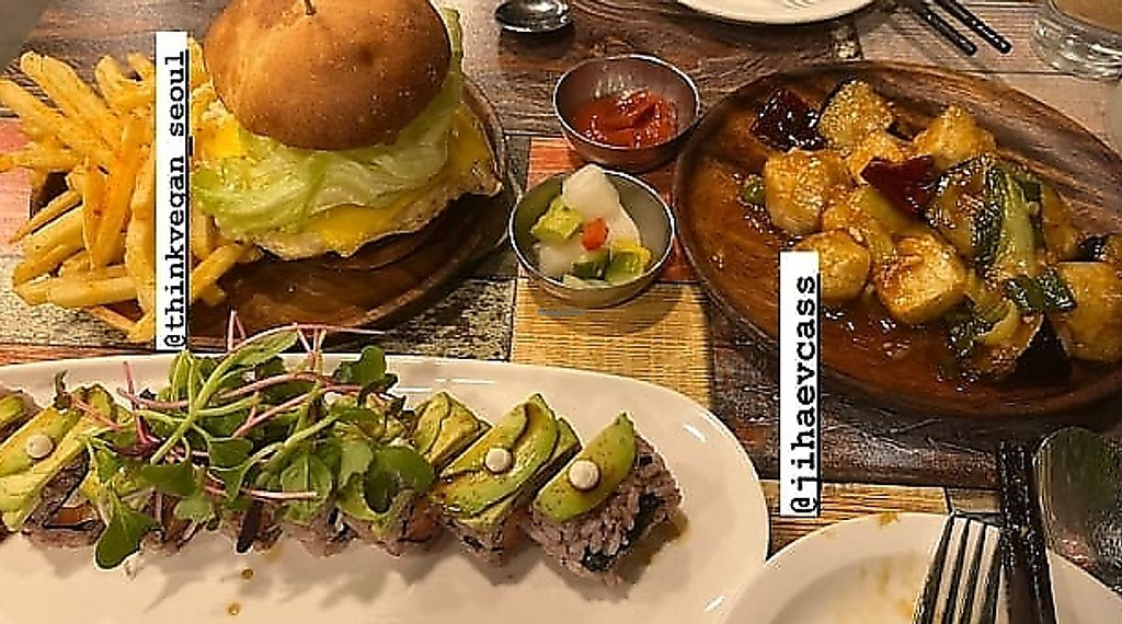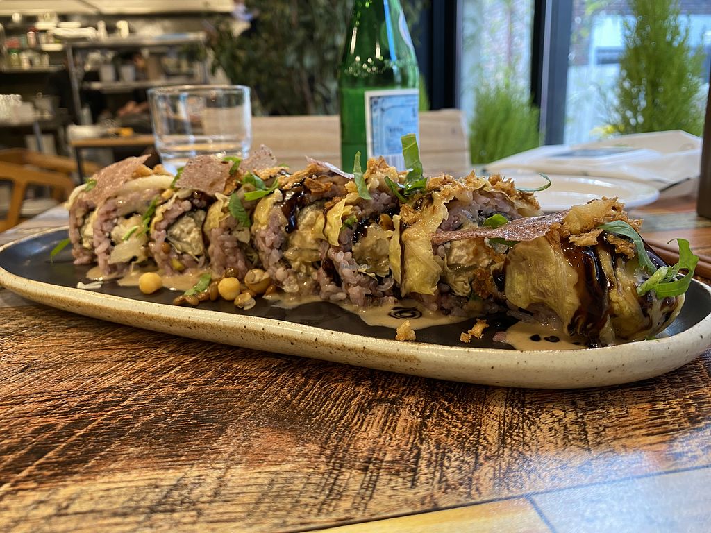 Avocado sushi, burger and sweet and sour fried tofu!