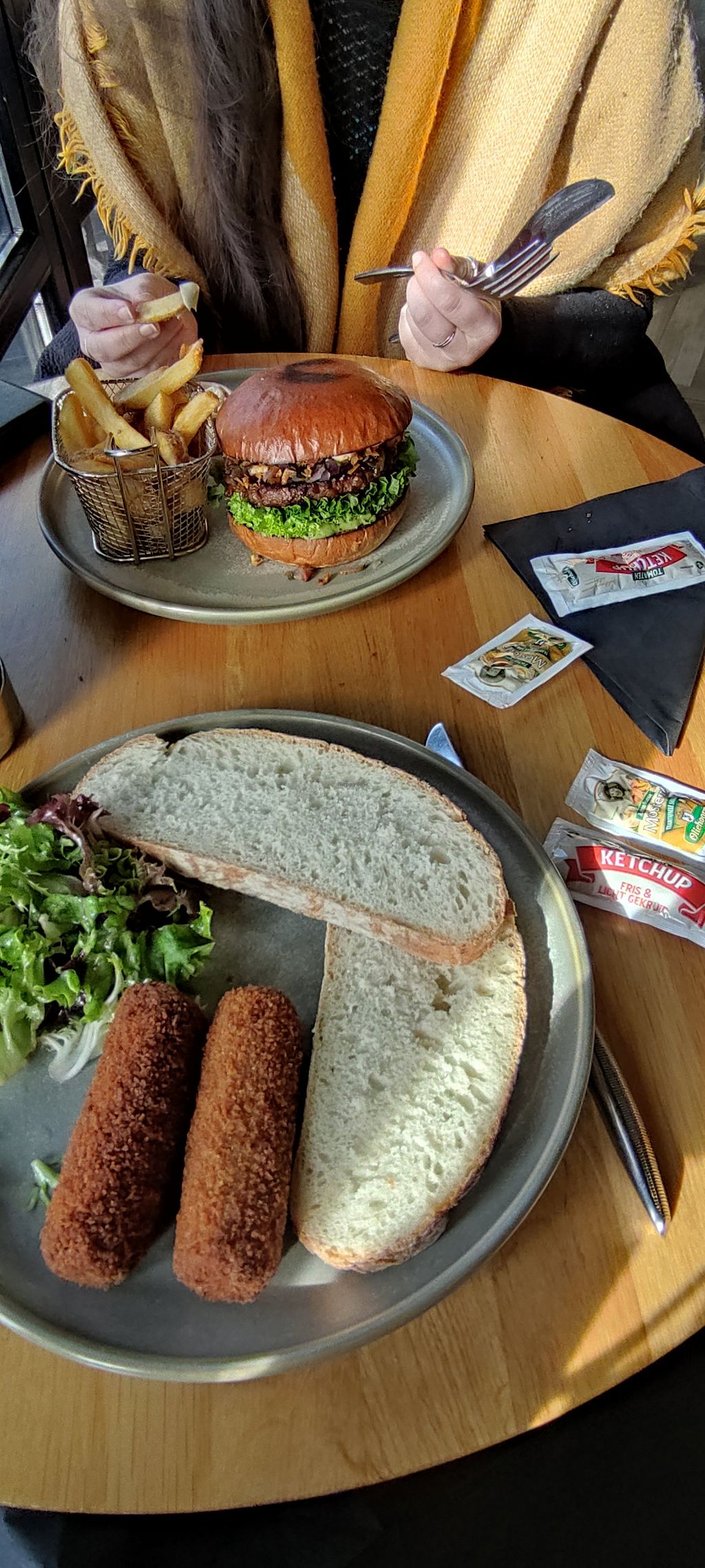 Un seul plat est vegan, a savoir les vegan croquettes. Le burger contient mayo ET fromage donc possibilité de demander sans mais très peu d'intérêt...
