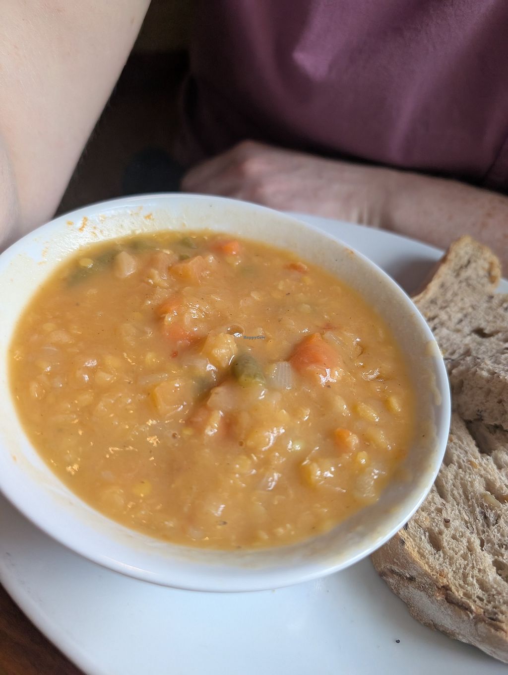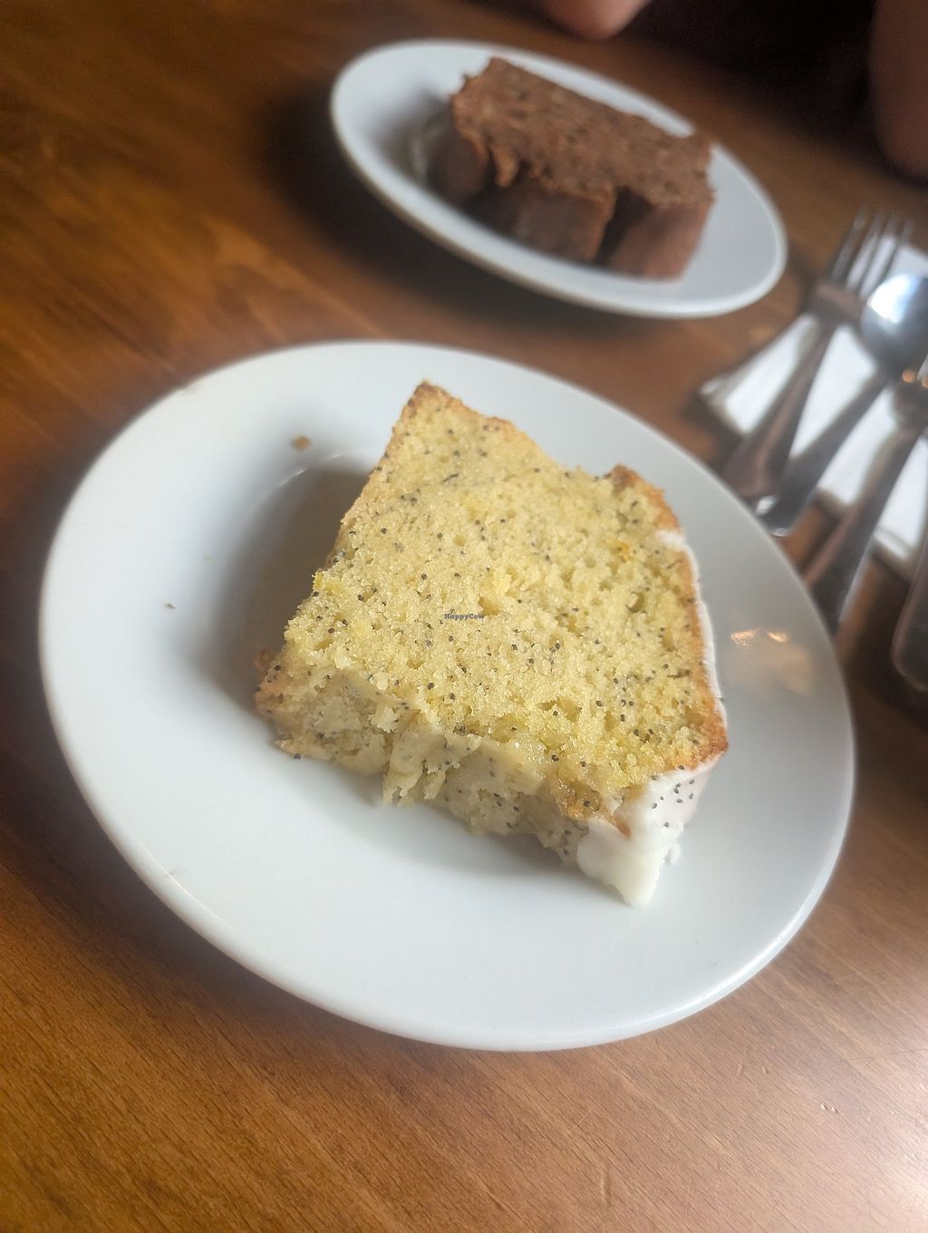 Pleasantly surprised with the choice of two vegan cakes. Only non dairy milk available is oat. One of the two soups was vegan, but think it came with non vegan butter.