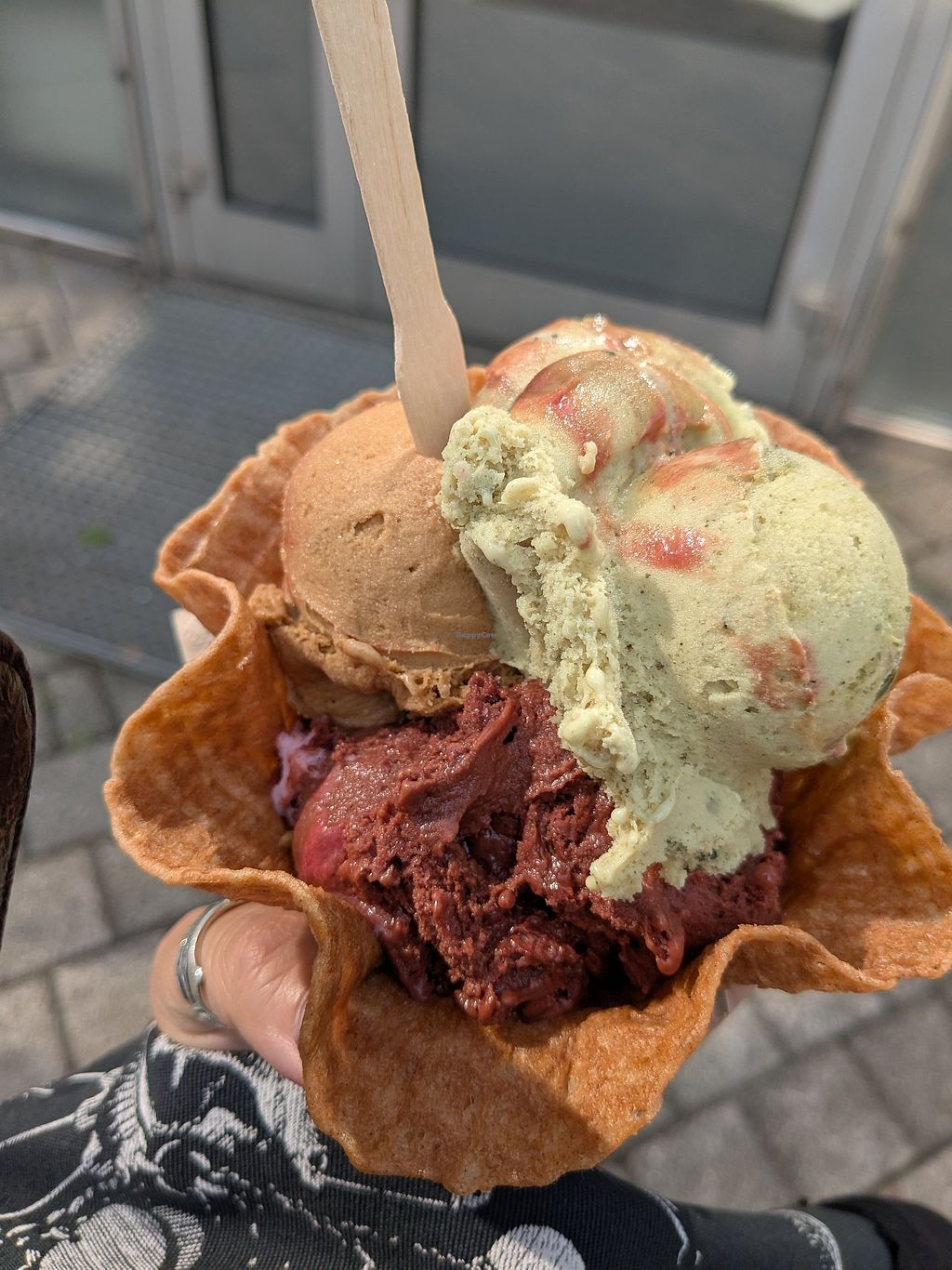 Made a stop to just get some icecream and luckily it was the first day he made vegan waffles. As he told us the waffles should stay vegan in the future but ask for it to be sure.