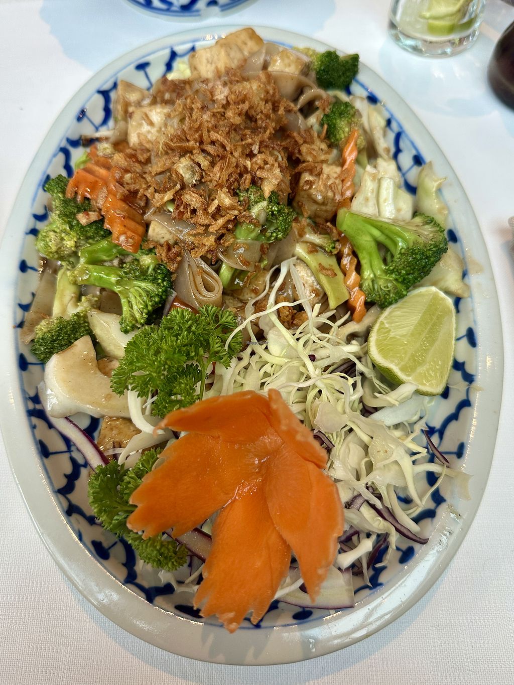 Pad Sie Eeuw: stir-fried rice noodles with broccoli, cabbage and carro…