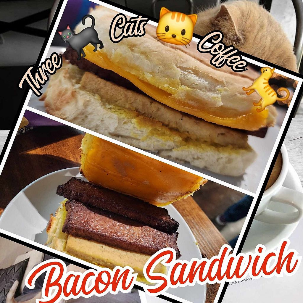 Three Cats has quickly become my favorite cafe in the area! The drink menu is creative and delicious (the teriyaki latte and orange mocha are my personal favorites), and their season drinks have been consistently amazing as well. Their food menu is fantastic too; my go-tos are the Kari Krunch and ‘Bacun’ sandwich. Plus, the owner and workers are all super kind and accommodating. The atmosphere is unmatched and I love going back for more each week.