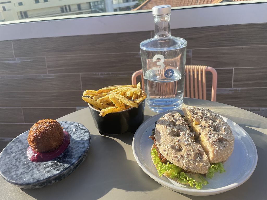 Vegan bombe and vegan burger, both on light bites (all day) menu