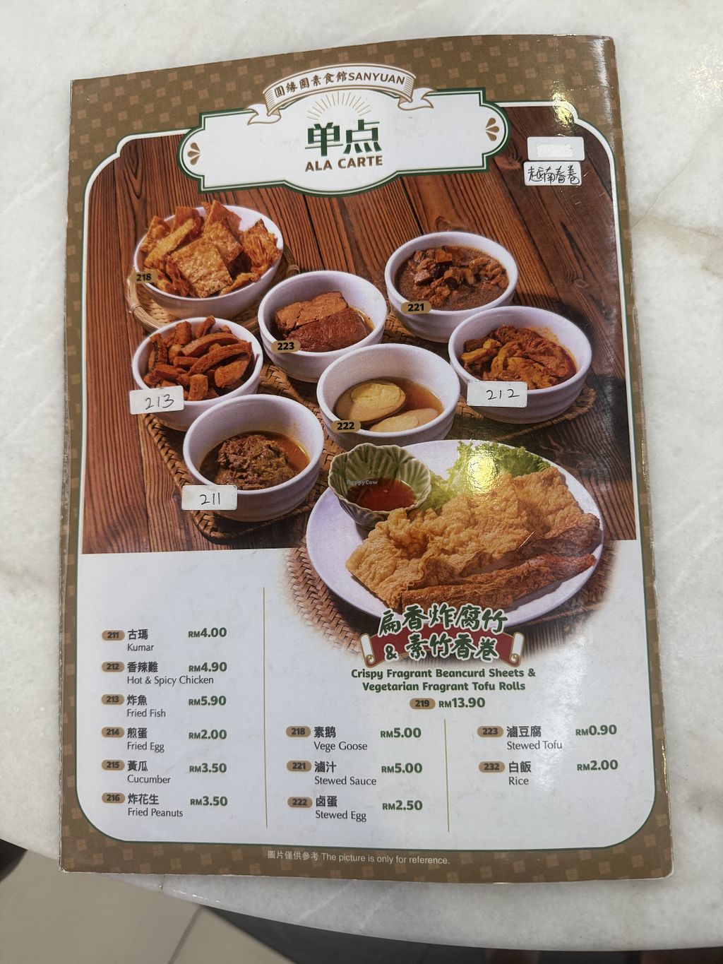 圆缘园 sells vegetarian food and Buddhist items. Specialises in char kway teow noodles, nasi lemak, and other local favourites. Relocated from Jln. Permas. Open Tue-Sun 8:00am-3:30pm. Last orders 3pm. Open on Mon if it is a new or full moon day.