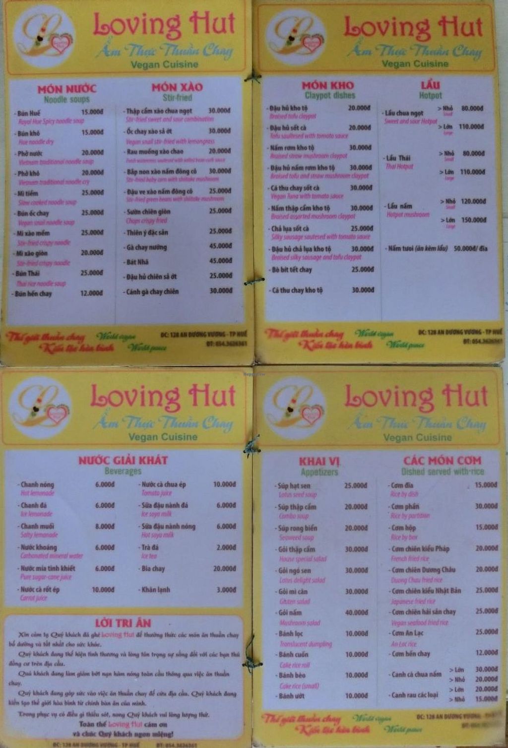 Loving Hut menu, January 2015