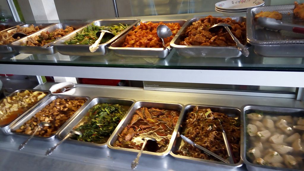 Vegan-friendly Chinese Buffet Fast food Indonesian Vegetarian restaurant with various kind of menus available. Located in front of Bumi Raya factory. More