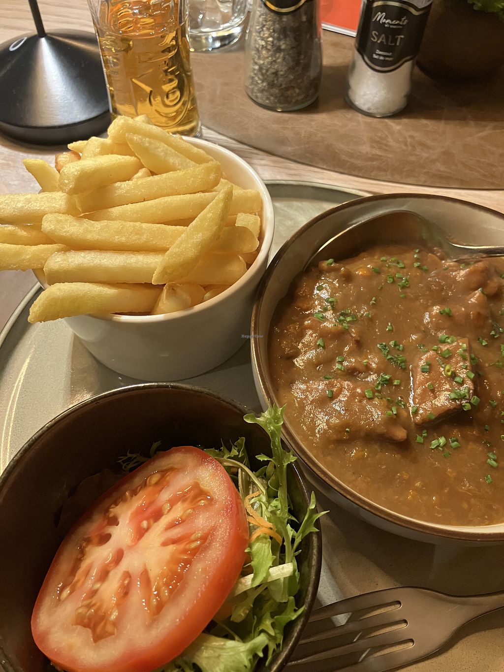 Gezellig restaurant met voldoende vegan opties. Je voelt je er echt welkom als vegan. De stoofvlees genomen en was lekker!