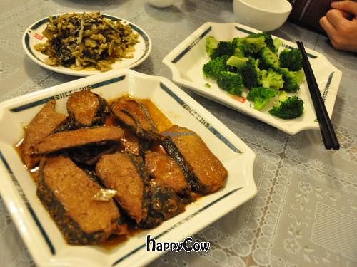 Fish in brown sauce, steamed brocolli