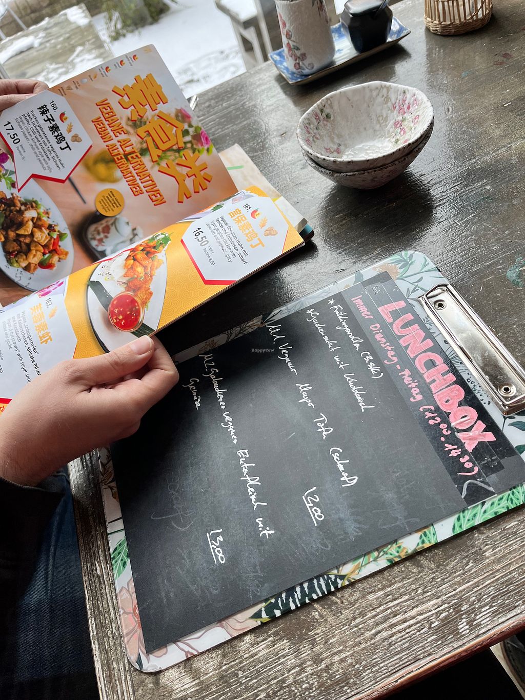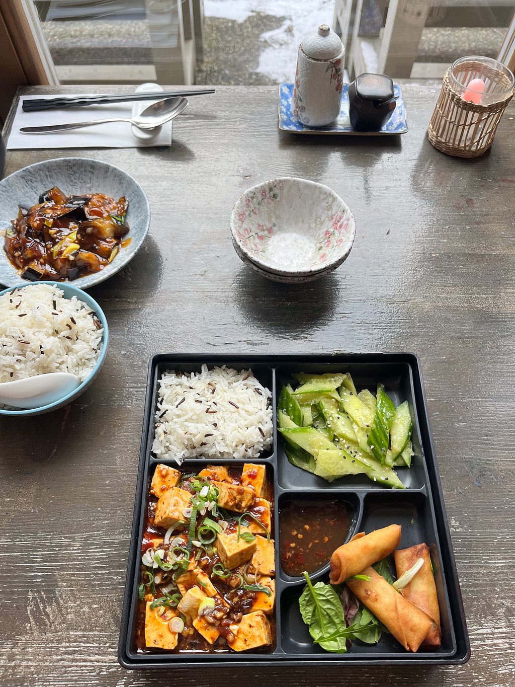 Mapo tofu lunchbox for 12€, and an aubergine dish with rice (extra).