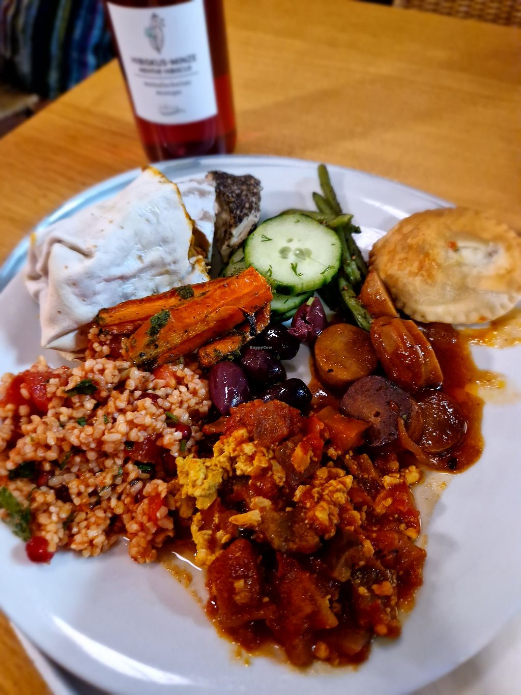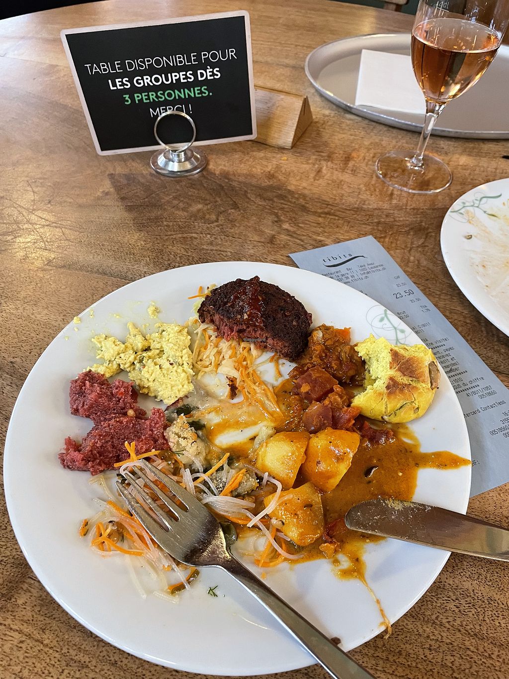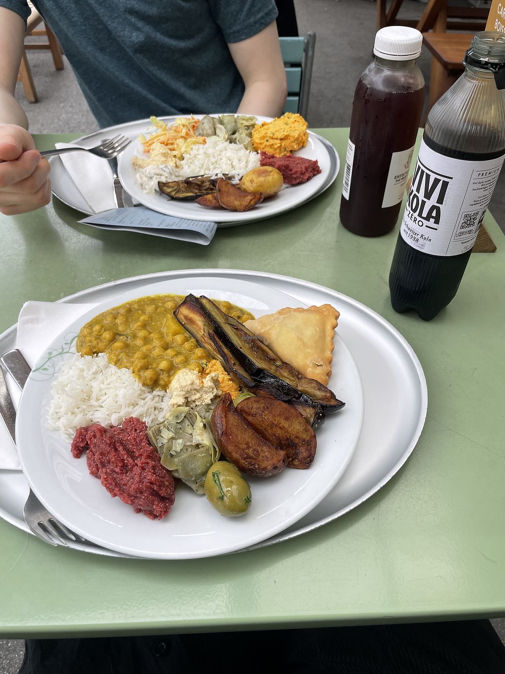 Soy Schnitzel, Broccoli, Potatoe Salad, Beetroot Ball, Cheesecake Salt…