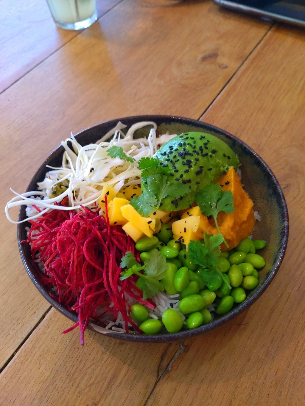 completely vegan with some optional fish and dairy additions. great atmosphere and playlist. perfect brunch spot for a slightly pricey but decent price.