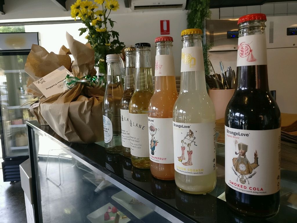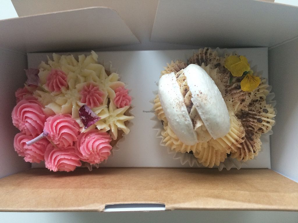 Lemon meringue cupcake, peanut butter slice, and gree smoothie