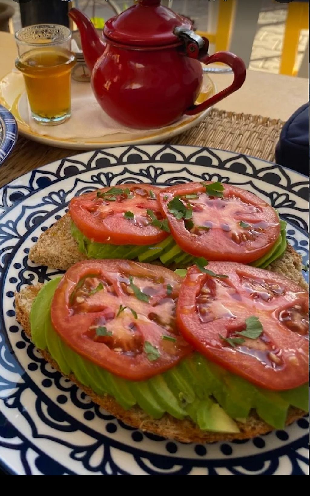 Toast avocat tomate… ça paraît bizarre ais difficile à trouver au Maro…