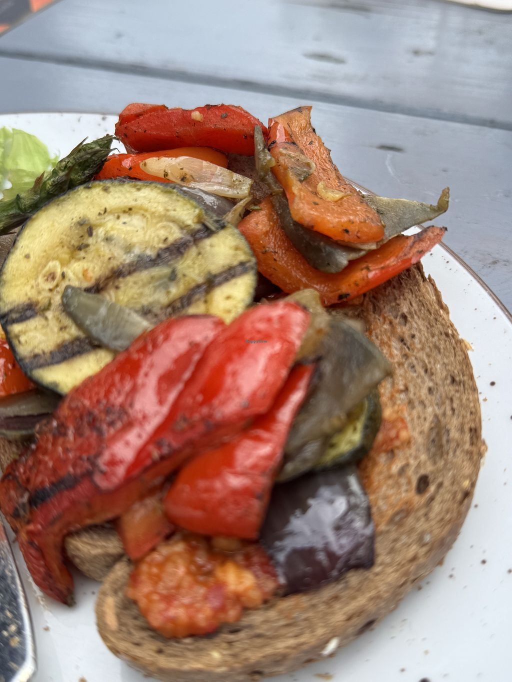 Fijne locatie om even je boot aan te leggen en op het terras te gaan zitten. Wij waren hier voor de lunch, maar er zijn ook een paar vegan opties voor het diner. Prima vegan eten, maar niet super speciaal ofzo.