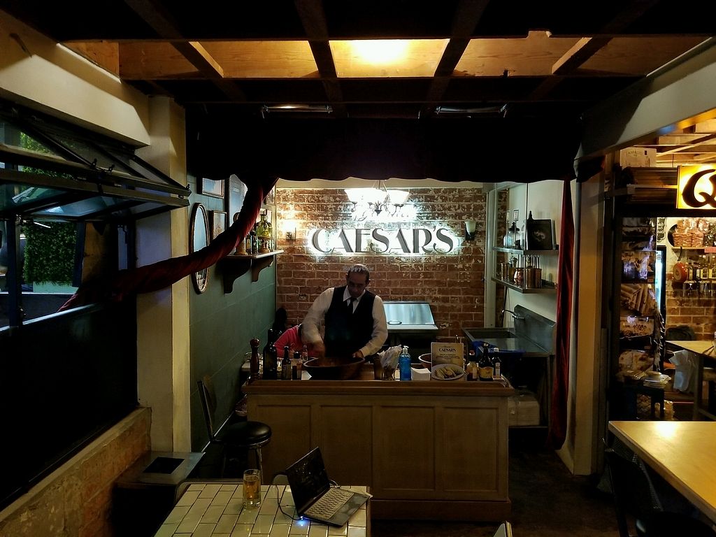 Serves meat, vegan options available. Small annex food stall from the owners of the original Caesar's Restaurant. Began offering a vegan caesar salad in Jan 2013 and is developing this in 2018. Be sure to ask for vegan as the original caesar salad is not vegan. Removed Feb 2019, reported no longer to offer the vegan version.