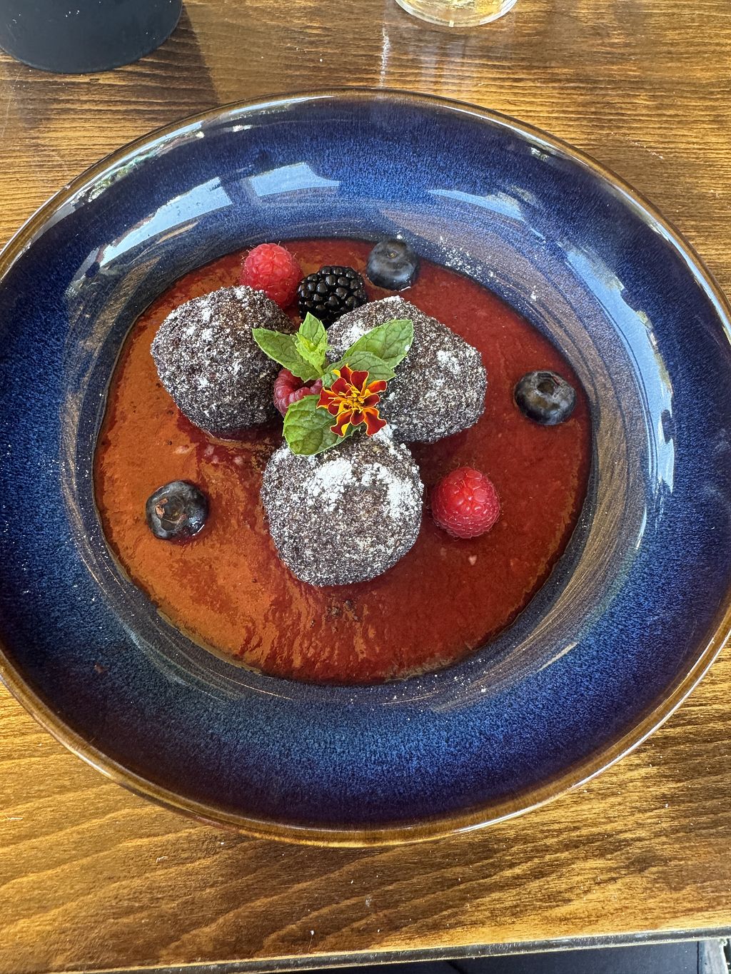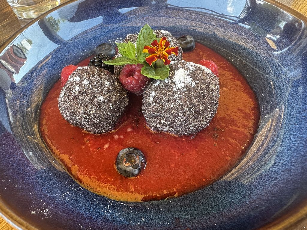 Vegan “cottage cheese” like dumplings with strawberry sauce