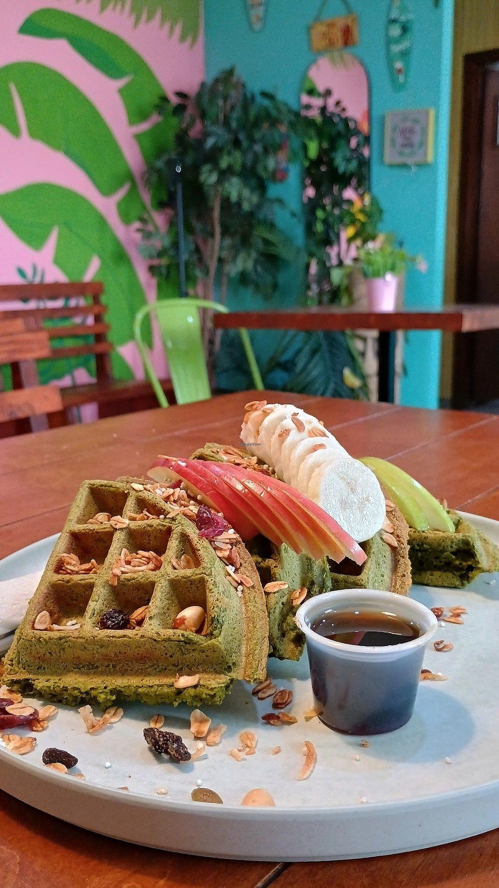 Hashbrowns, chickpeas, mushrooms with sofritas veggies, and fresh spinβ¦