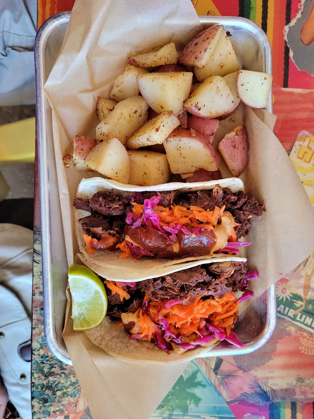 BBQ pork tacos with homefries