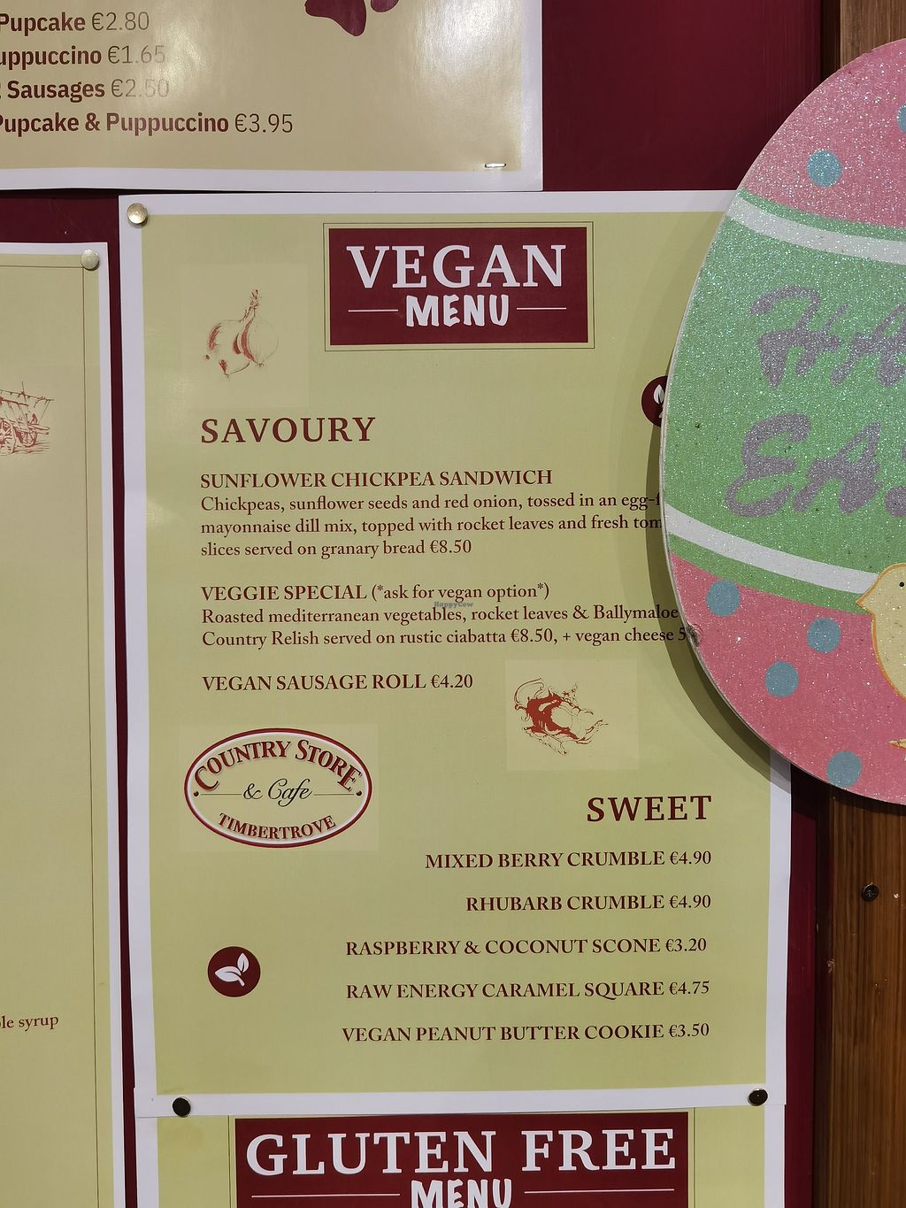 Cafe and country store serving sandwiches and baked goods. Example vegan offerings include sausage rolls, sunflower chickpea sandwich, vegan scone and more. Plant-based milk alternatives available. Open Tue-Sun 09:30-16:30. Closed Mon.