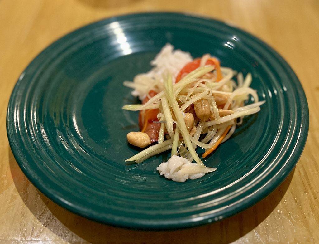 Garden curry with tofu, yellow curry with tofu, green papaya salad, av…
