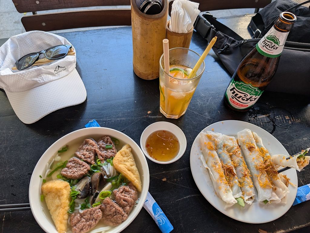 Definetely recommend because you can get a veganised version of most Vietnamese dishes here. The Hue Beef Noodle Soup was quite bland though, I had vegan phos or soups that were much more flavourful along the way. Spring rolls were nice though and the mock meats looked good as well. Maybe I just didn't grab the right dish this time. Super friendly staff, calm and cool place around lunch time on a weekend in February.