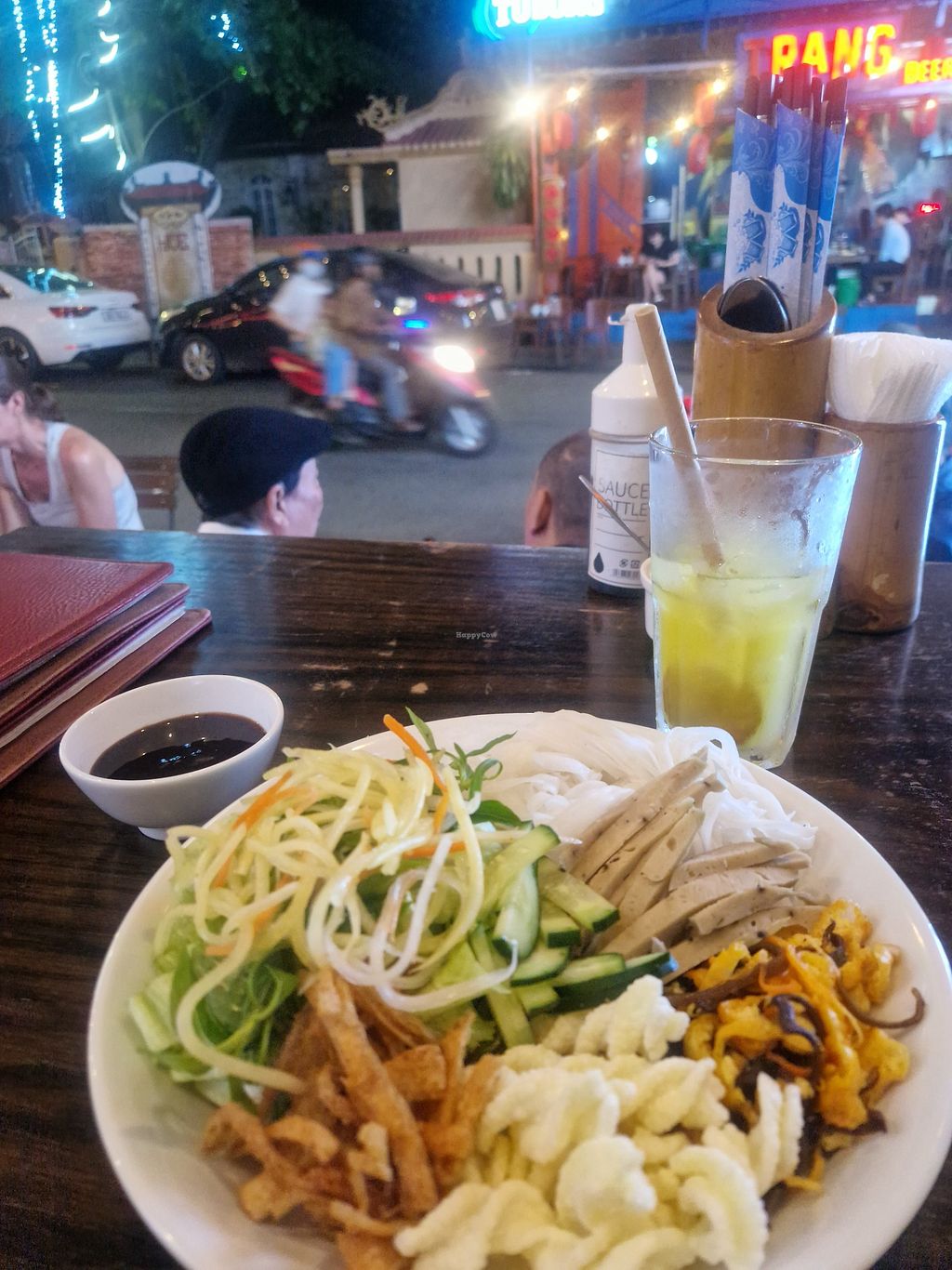 We had a tasty meal here, and it was nice to try multiple local dishes in a vegan version (plenty of choice in the menu). The lady who served us was very friendly and also showed us how to eat the cakes in banana leaves and taught us some Vietnamese words. The restaurant is targeted towards tourists but the bars in the street surrounding it are not, which we enjoyed as it was excellent for people watching on a very busy holiday season evening. We would certainly recommend the restaurant.