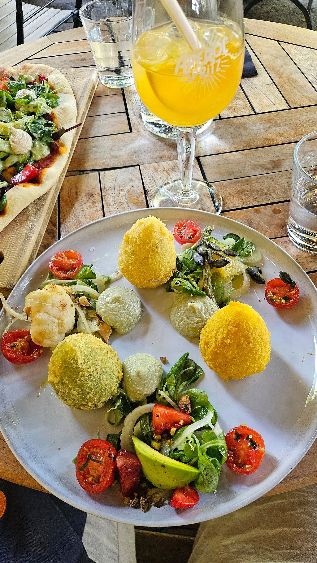 Had a great homemade vegan falafel salad plate with lots of different delicious components, great combination of flavors and textures. Big portion.