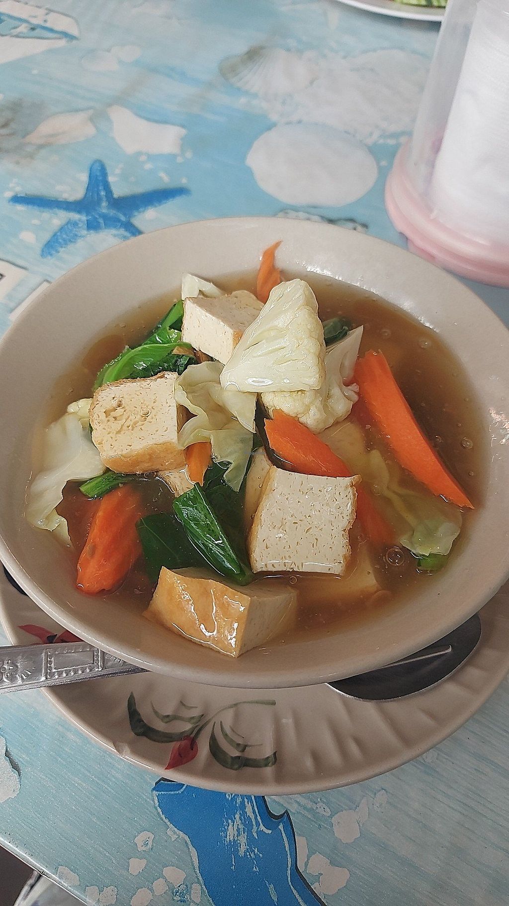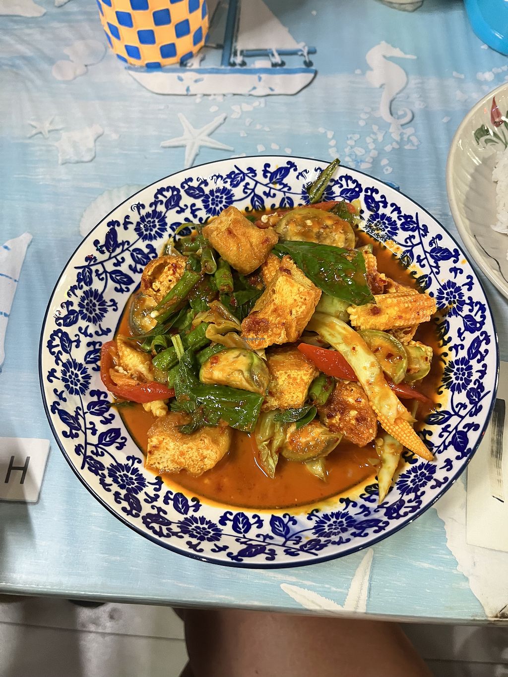 We ate here each night for dinner. Popular restaurant often with a queue but it moves quickly. There are 2 pages of vegetarian options, we enjoyed the red and green curry (not Spicy) and veges and tofu. Fast and friendly service.