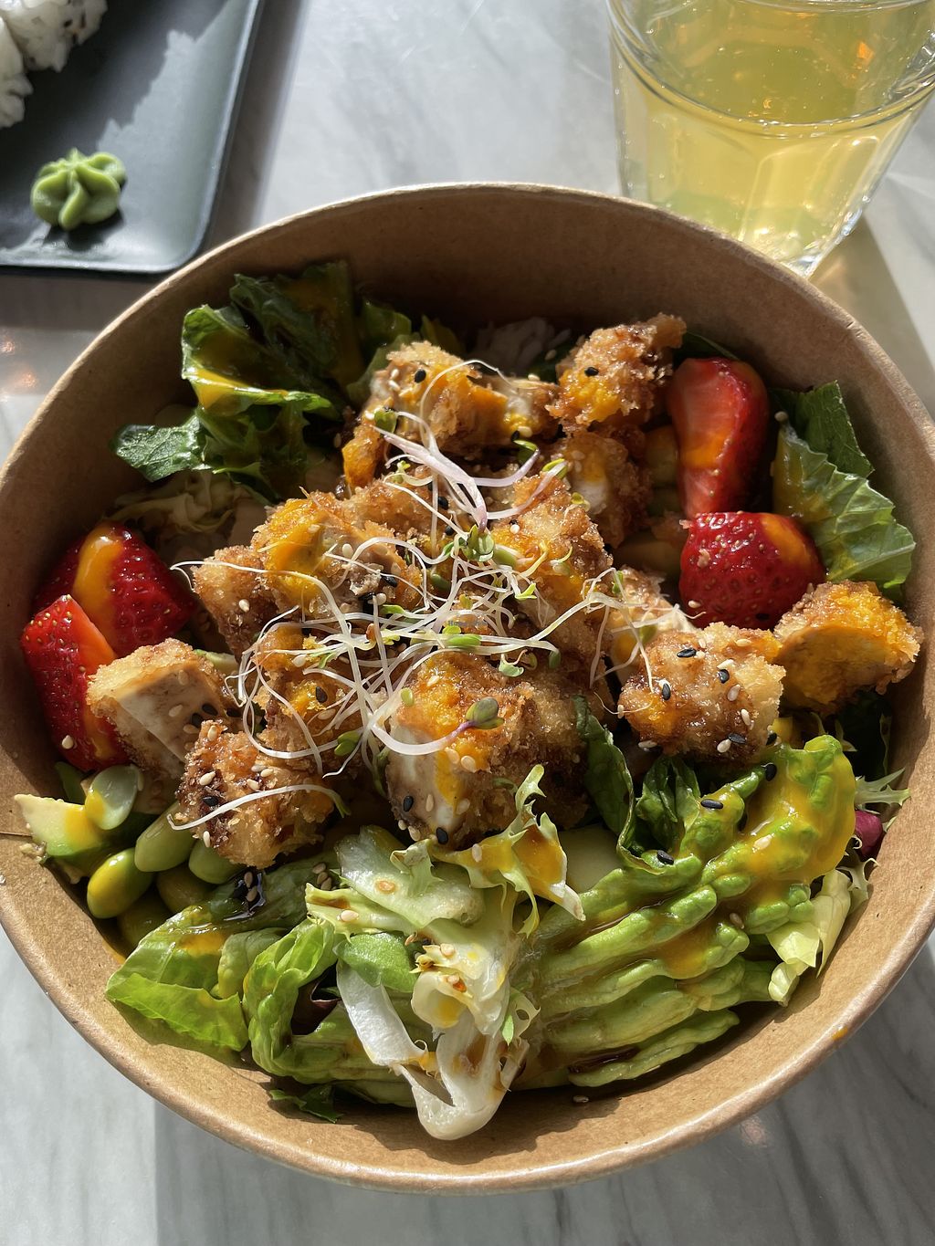 I had the Tofu Bowl and it was soooo good! On the vegan menu there is three sushi dishes and this bowl. Small place mostly for take away, but there is a few seats.