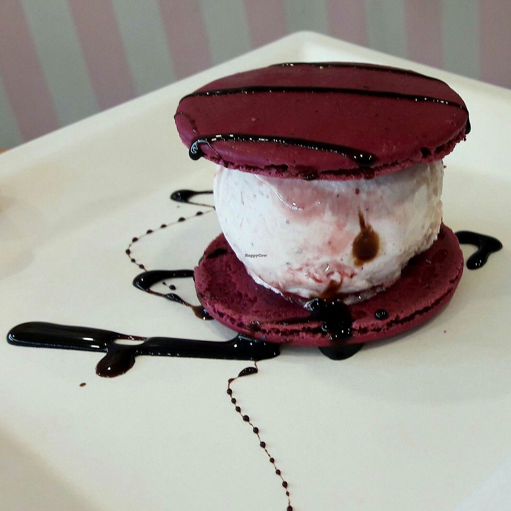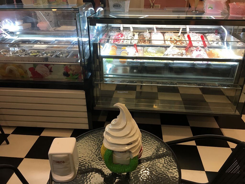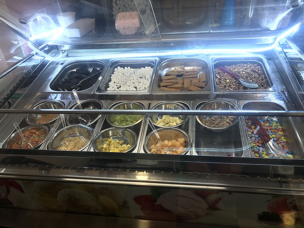 Belgian waffle with ice cream, sweet cream, frozen yoghurt & various v…
