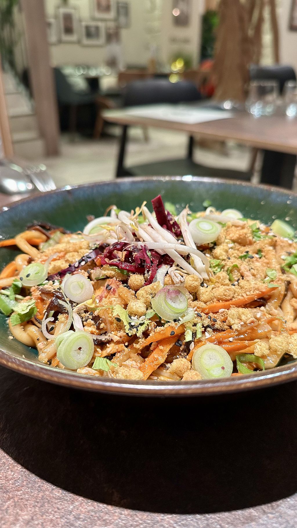 Wir waren abends gegen 20 Uhr im TÔ! und hatten Glück, überhaupt noch einen Platz zu bekommen – das Restaurant war bis auf den letzten Platz gefüllt. Es gibt einige klar gekennzeichnete vegane Gerichte. Ich habe die Udon Tofu Saté bestellt und war sehr zufrieden – geschmacklich gut abgestimmt und würde ich beim nächsten Mal definitiv wieder nehmen.