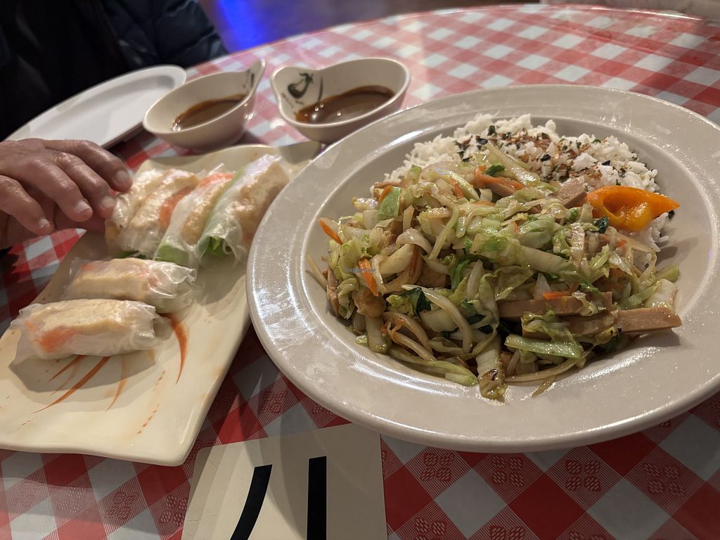 We got the salad rolls with tofu (be sure to request the tofu instead of shrimp/chicken!) and vegan rice. Vegan rice had a mix of veggies, tofu, and seitan. Everything was tasty